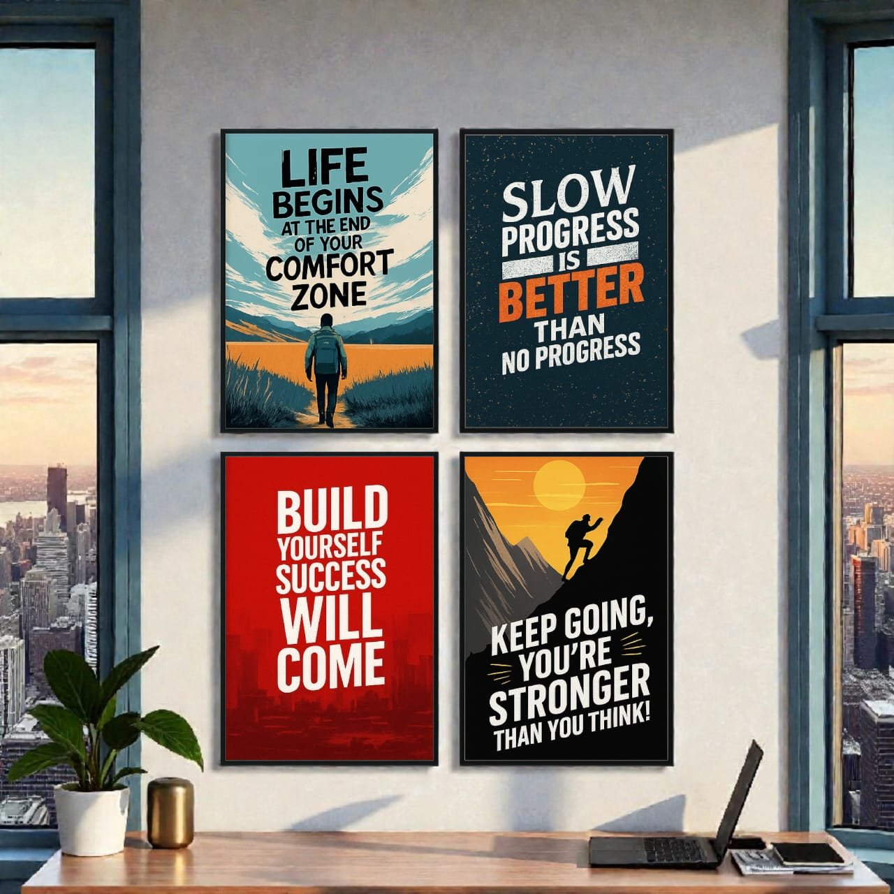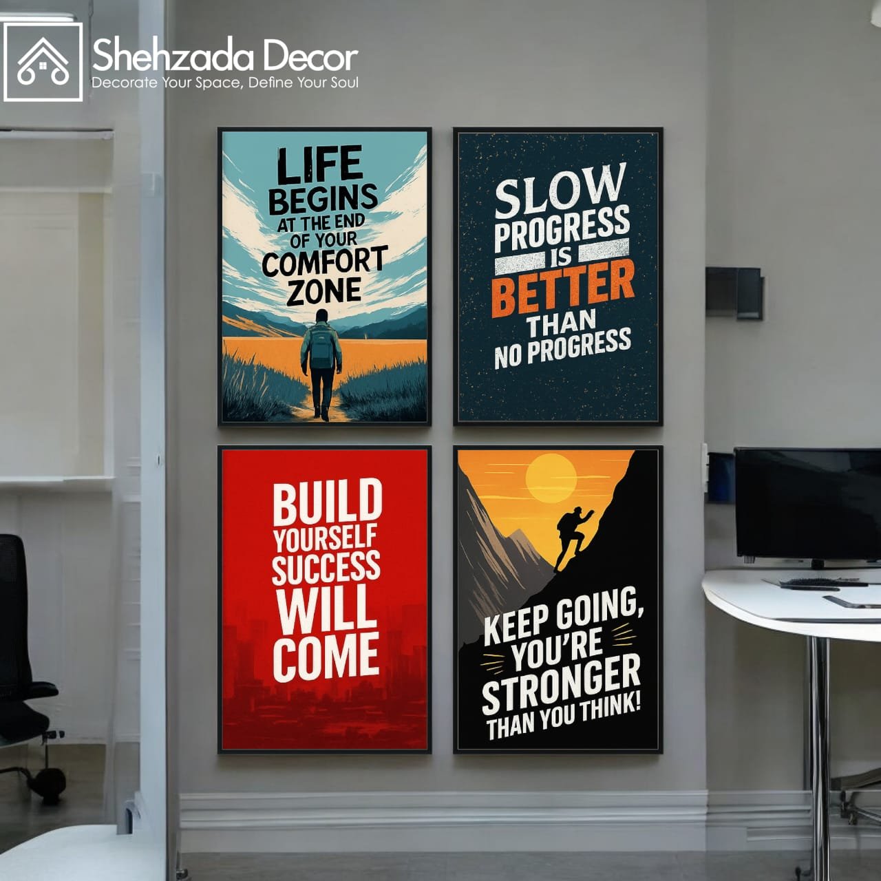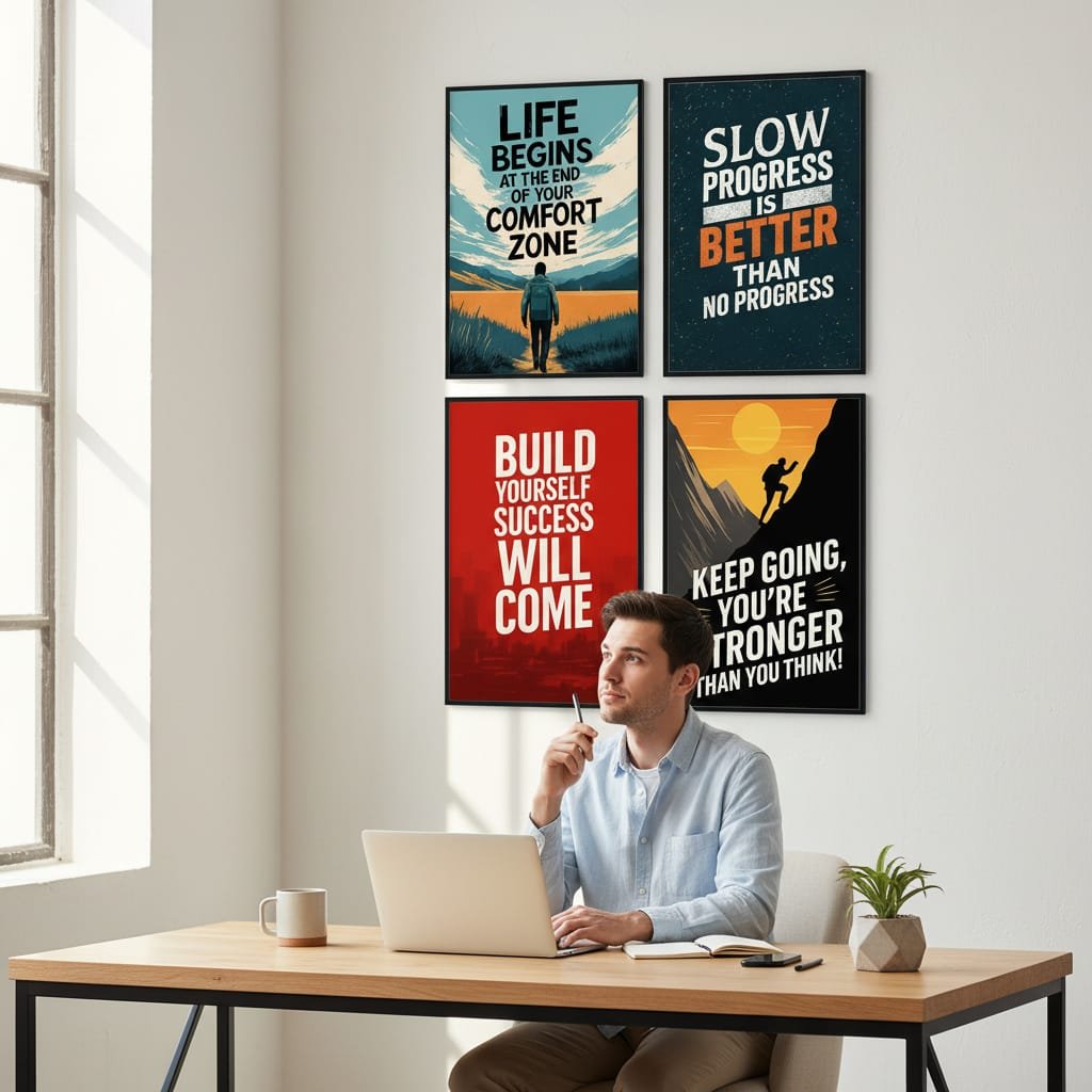 Give your walls a modern, positive, and professional look with this Pack of 4 Motivational Wall Frames, designed to enhance home, office, study room, and workspace décor.