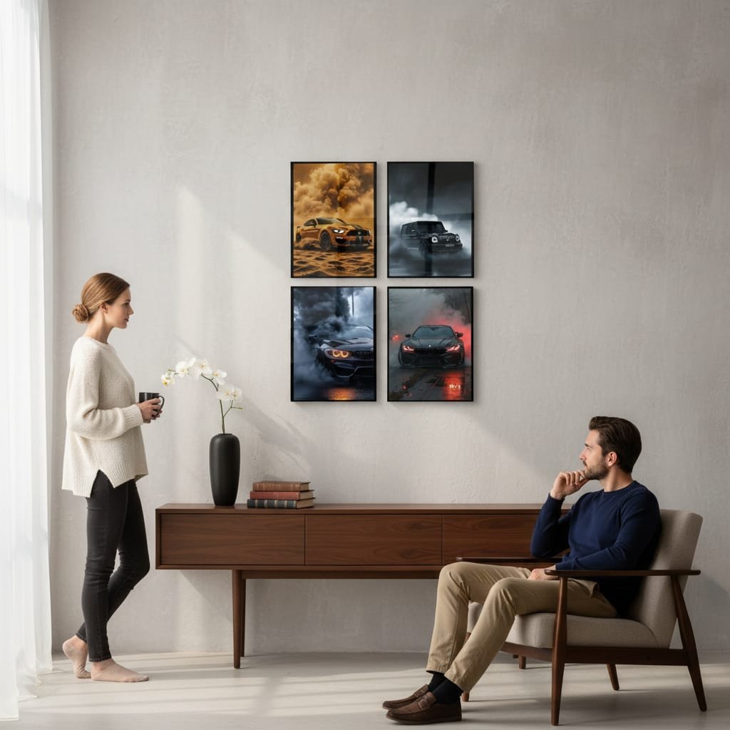 Transform any room into a high-speed sanctuary with this 4-Piece Automotive Masterpiece Frame Collection. At ShehzadaDecor, we believe your walls should reflect your passion. This set features iconic high-performance vehicles, curated and framed to perfection to meet the highest standards of interior design.